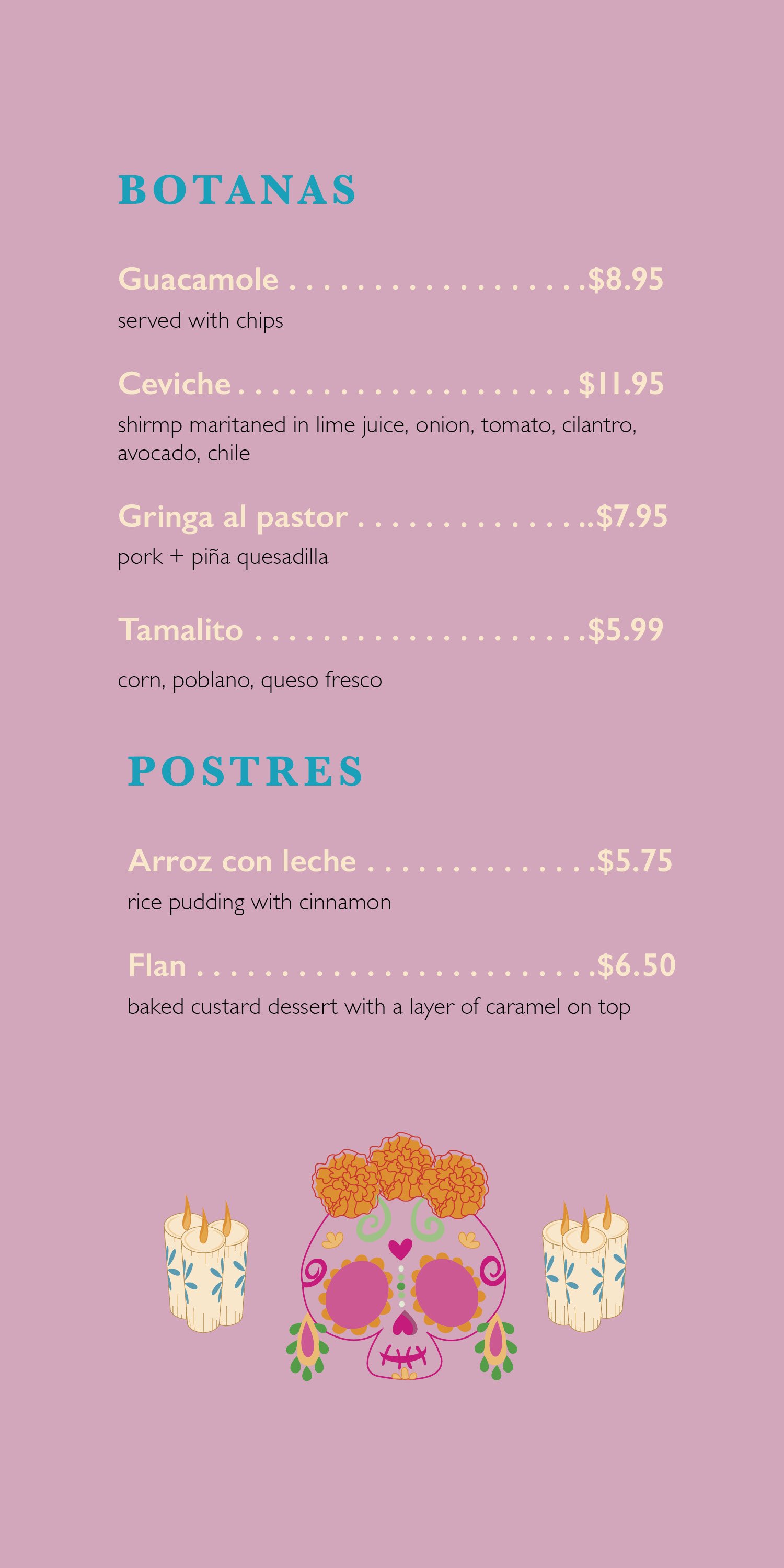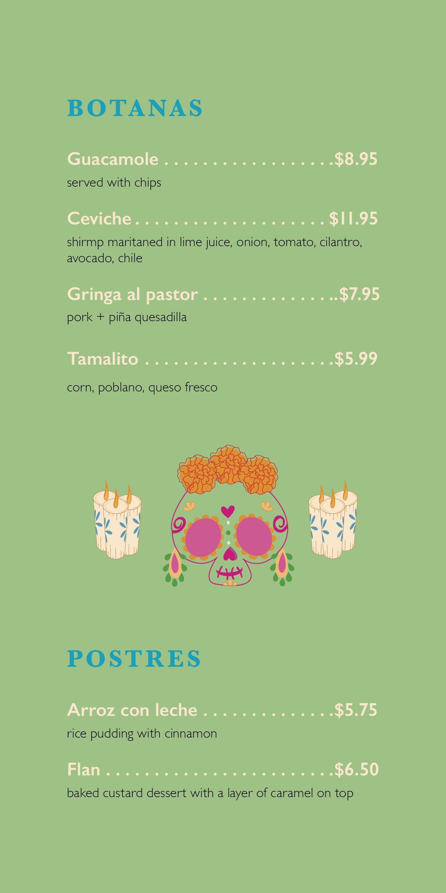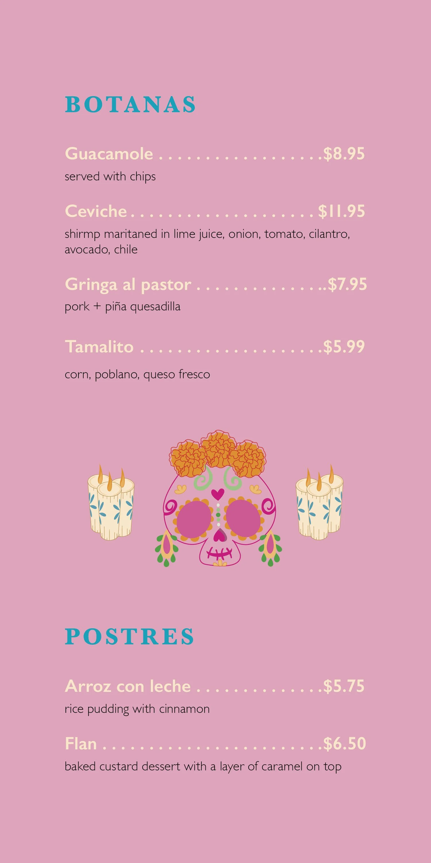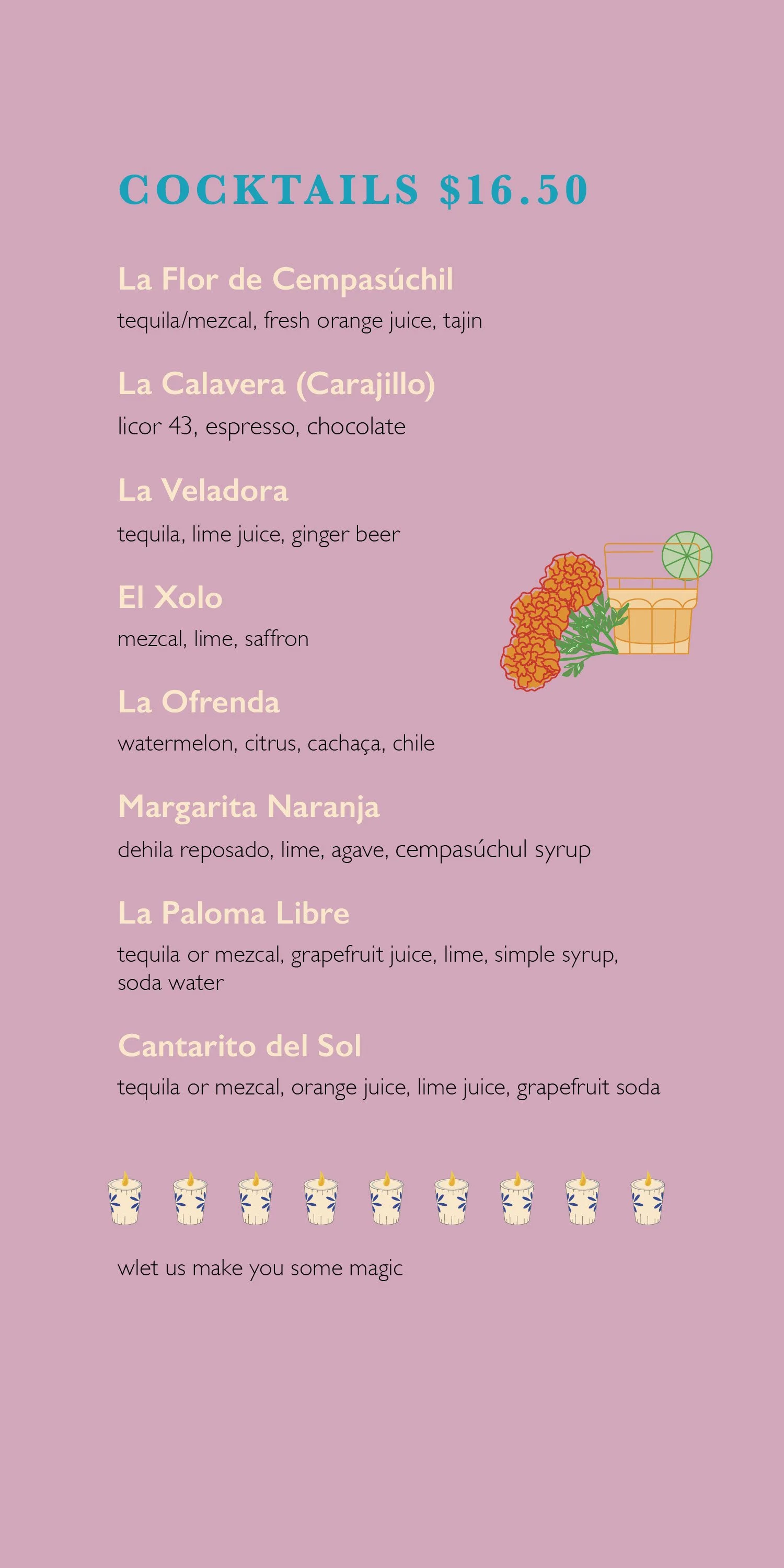 Cempasúchil is bar themed around the Mexican holiday Día de los Muertos. The goal was to elevate traditional symbols, such as the marigold and calaveras, into a sophisticated brand identity that avoids visual clichés while maintaining deep cultural roots.